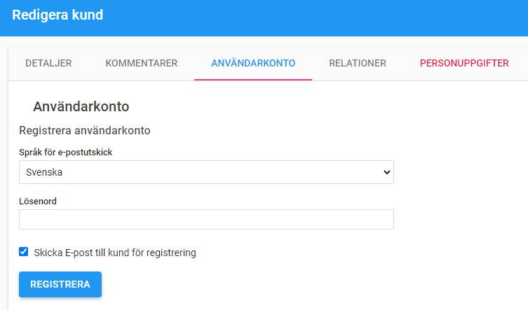 Kryssa i rutan "Skicka e-post till kund för registrering"