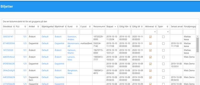 Längst ner på denna sida finns en logg som listar allt som hänt med biljetten, t ex när den skapades, alla passager, förlängningar, spärrar osv. Om biljetten har en nekad passage kan man här läsa ut i vilken läsare och varför biljetten har nekats passage.