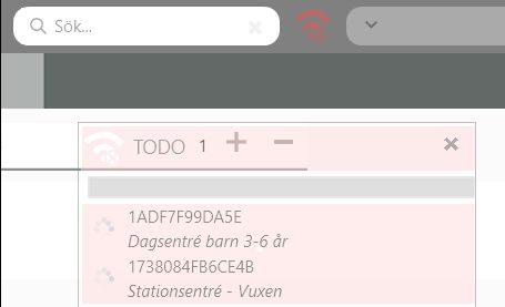 offlineläge och upptäcker automatiskt när servern är otillgänglig.-ikonen vid sökrutan blir då röd (se bild nedan). Om detta